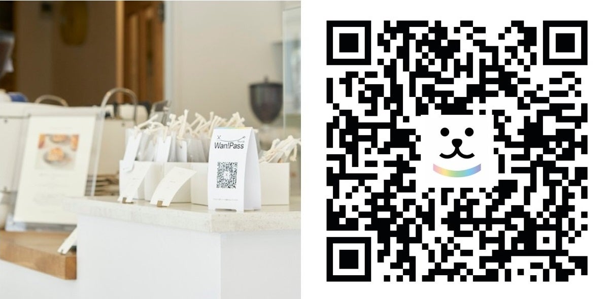 ②湘南T-SITE内のペットと入店可能な店舗のレジ周辺に設置している「Wan!PassアプリQRコード」を読み込んでください。
