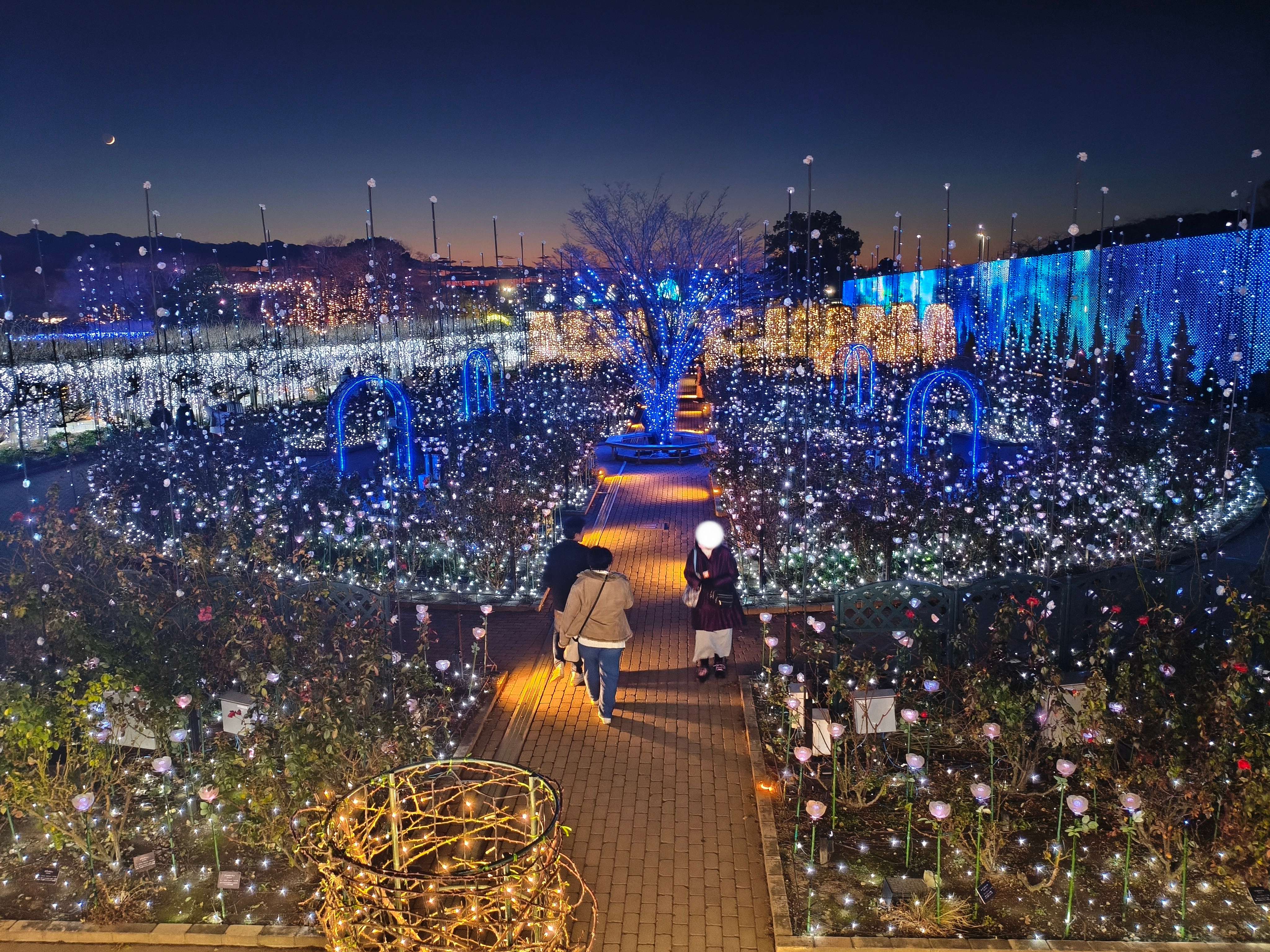 正面ゲートから一番近くにあるのは「光のバラ園」で、展望台に上るとバラの豊潤な香りと、無数のバラが光で咲き誇るガーデンが広がっていました!