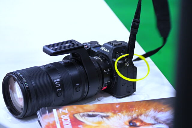 体験整理券の争奪戦となっているニコンの最新望遠レンズ。実際にZ 8に装着された実機を手に取った瞬間、周囲の来場者からも「えっ、軽い!」という驚きの声が漏れていました。
