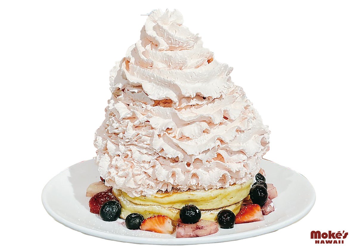 ハワイカイルアに本店を構える「モケス ハワイ」江の島店より、ベリーが香るホイップクリームをたっぷりと乗せた、「ジャンボクリームパンケーキ」を発売開始いたしました。ふんわり焼き立てのパンケーキに、これでもか!といわんばかりのベリー風味ホイップクリーム、今が旬のいちご、ブルーベリーをトッピング。数人でシェアもできるボリュームながら、ベリーの爽やかな甘さと酸味で、最後まで飽きずにご堪能いただけます。