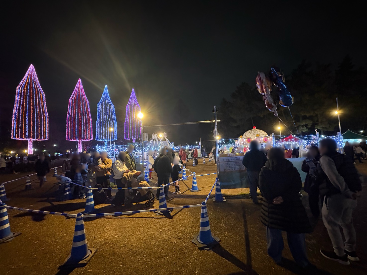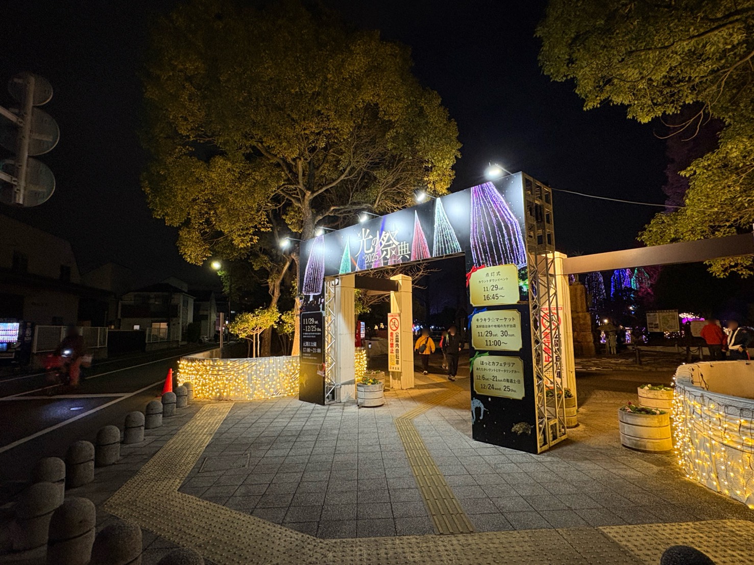 住宅街を通るルートでしたが、街灯がしっかり設置されていて夜でも安心して歩けました。入口付近はイルミネーションで彩られていて、遠くからでもイベントの雰囲気が感じられ、迷わず到着できたのが良かったです。