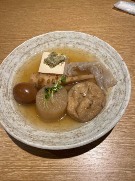 女将の目利きでその瞬間に美味しいお出汁の染みた熱々で体の温まるおでんを厳選して提供します。