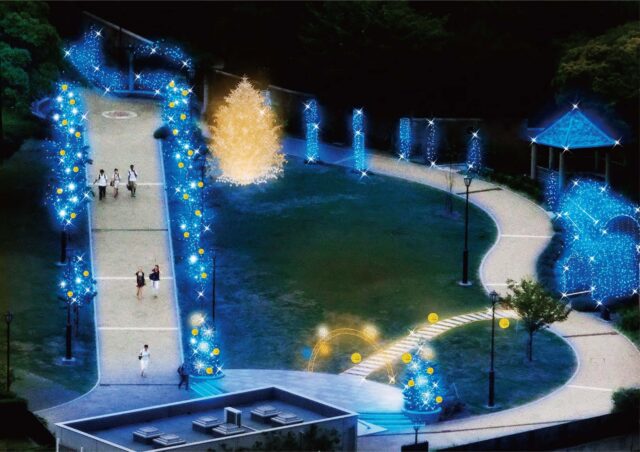 アメリカ山公園のミツバチたちが、夜空に魔法をかけたようなイルミネーションに姿を変えます。