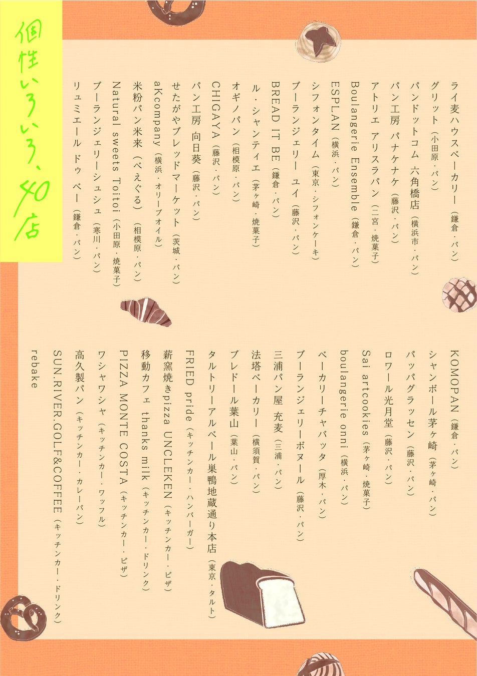 地元藤沢や近隣の湘南地域のベーカリーはもちろんのこと、横浜・相模原の名店も出店致します。