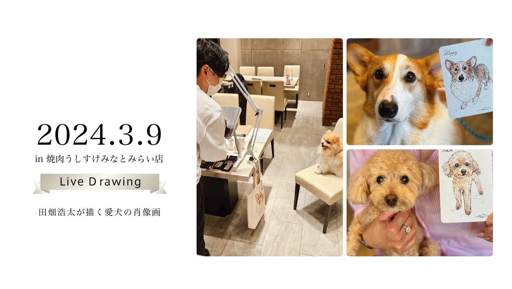 このたび、ペット同飯™️可レストラン「うしすけ」は2024年3月9日(土)にアートポラリスの『ライブドローイング』イベントを、当社直営店舗「焼肉うしすけみなとみらい店」にて開催。